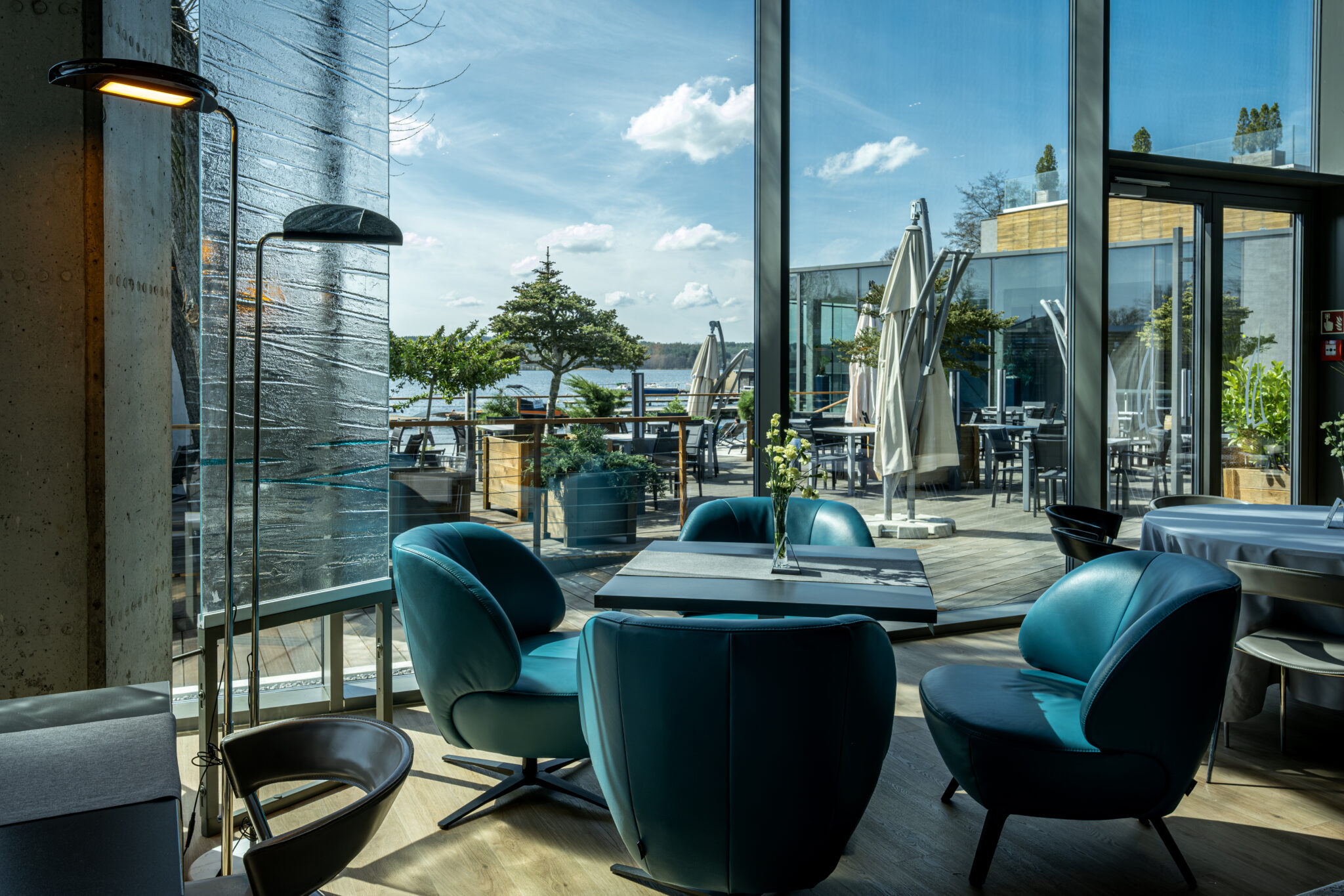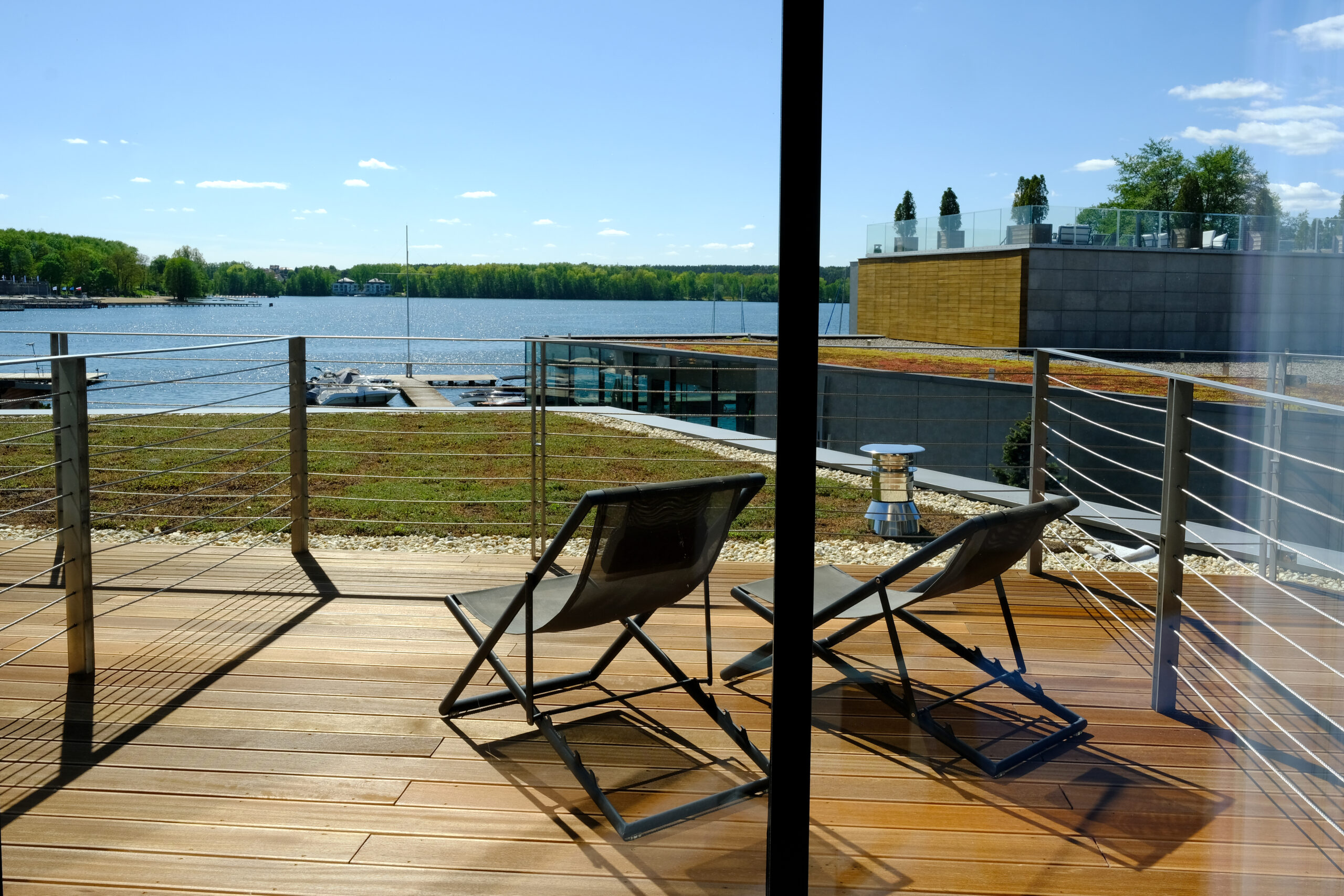 Architektura Przystani została zaprojektowana tak, aby w pełni wykorzystać wyjątkową lokalizację. Duże przeszklenia, tarasy i bliskość jeziora sprawiają, że natura staje się częścią pobytu. Obiekt wyznacza standardy hotelarstwa premium w północnej Polsce i pełni rolę ambasadora Warmii i Mazur.